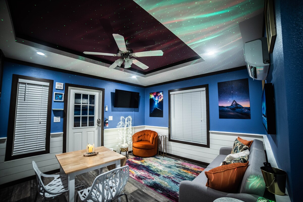 Évadez-vous dans ce paisible cottage d'une chambre entouré par la nature. Le cottage présente des tons neutres doux, des textures de bois naturel et un éclairage doux. Profitez d'une cuisine entièrement équipée, d'un salon confortable, d'une salle de bain moderne et d'un lit queen size moelleux pour un sommeil réparateur. Passez vos journées à pêcher, à faire du bateau ou du paddle sur le lac privé. À quelques minutes du célèbre Texas Renaissance Festival, cette retraite tranquille est le mélange parfait de calme, de confort et de charme champêtre.