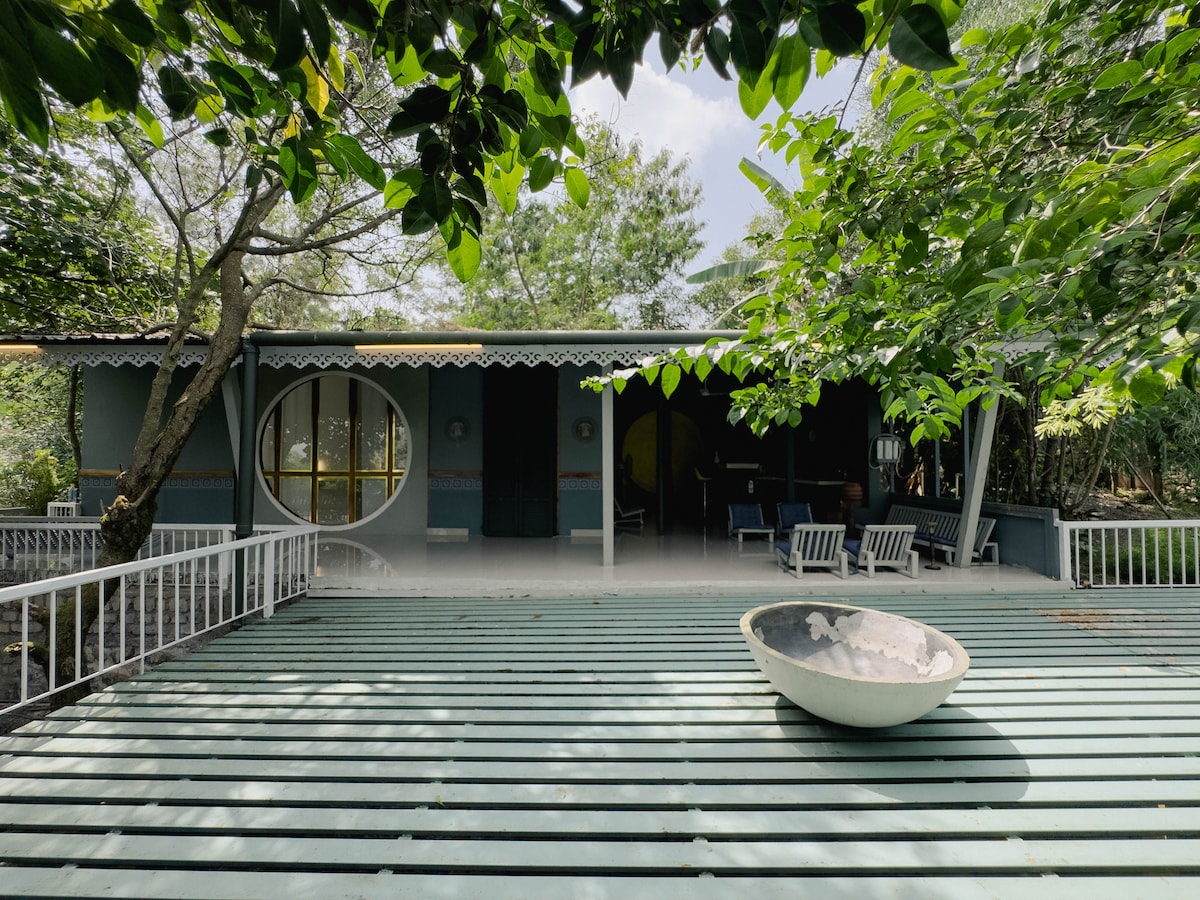 Niché dans le cadre paisible des eaux calmes de Khadakwasla, l'établissement est l'endroit où la nature, l'art et le patrimoine se mêlent en une expérience immersive. Fabriquée à partir de bois ancien récupéré dans un temple vieux de 200 ans dans un village tribal voisin, la maison porte la chaleur de l'histoire dans ses détails, des lits en bois lourds à la conception astucieuse de la cuisine. Intégrée avec soin à l'architecture moderne, elle est conçue pour évoquer un sentiment de calme et de connexion à la terre.