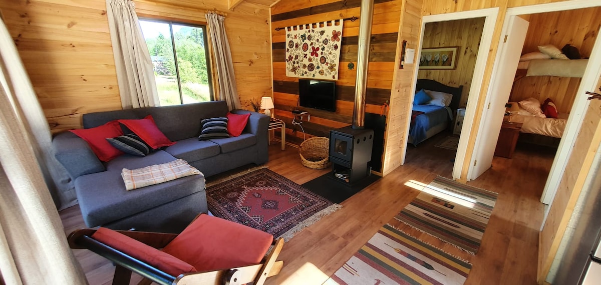 Mini cabaña ubicada en el pueblo de Curarrehue, perfecta para quienes buscan aventura, naturaleza y descanso. Desde aquí podrás explorar lagos, cascadas, termas y realizar trekking entre bosques de araucarias, rodeado de paisajes únicos del sur de Chile. La cabaña cuenta con dos dormitorios, ambos con baño privado, cocina equipada y wifi, ofreciendo comodidad y privacidad después de un día de exploración. Un punto de partida ideal para descubrir los atractivos de Curarrehue y sus alrededores.