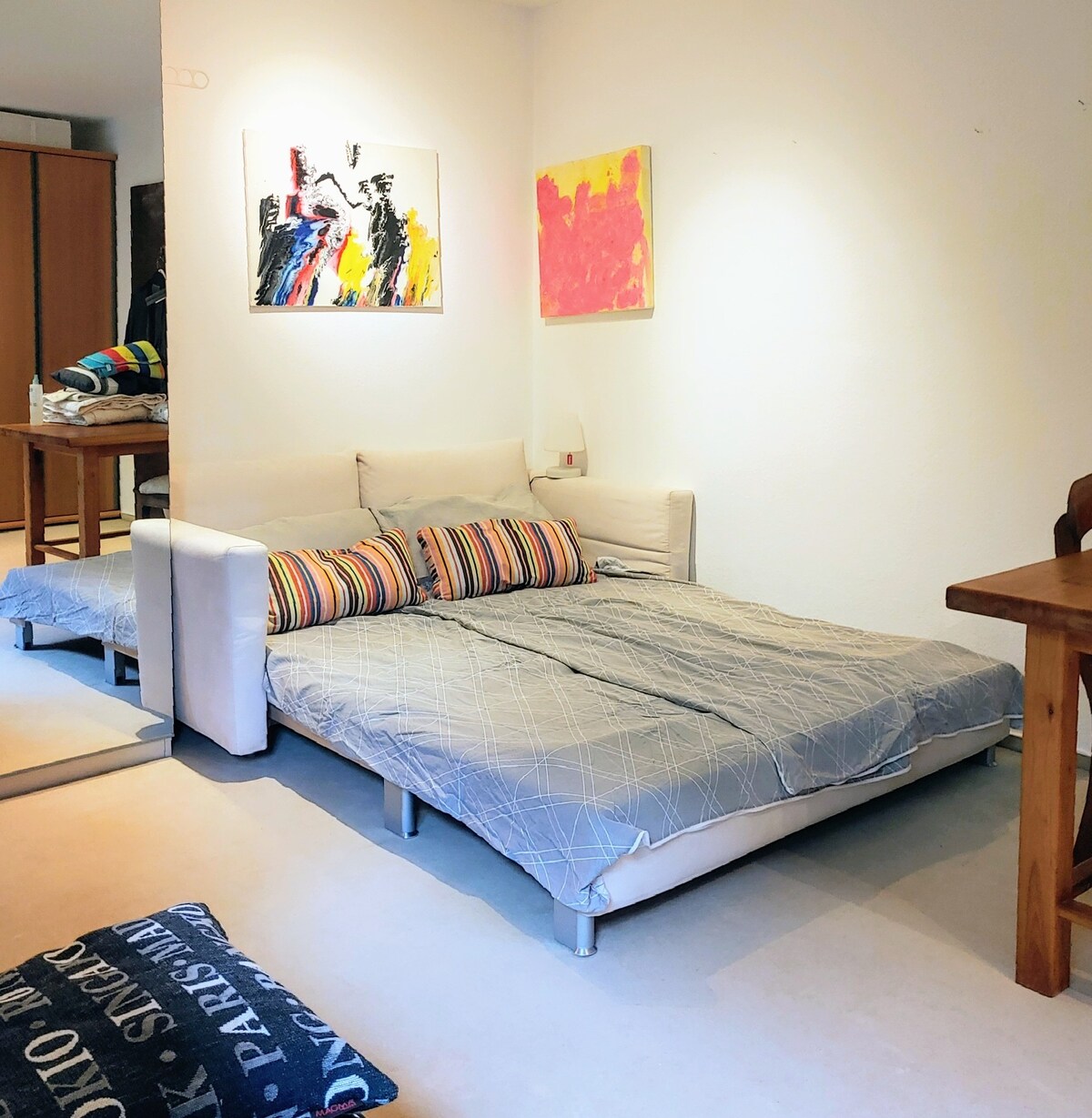 Notre penthouse (env. 150 m²) a son propre style. La terrasse sur le toit est particulièrement agréable en été. Ambiance de bien-être absolu en plein centre-ville. Nous organisons volontiers un atelier de vin. De Mayence, vous pouvez faire de merveilleuses excursions dans les régions viticoles de Rheinhessen, Nahe, Mittelrhein et Rheingau. Le carnaval de Mayence est un point fort. Depuis le balcon, on peut voir le défilé du lundi des Roses. Malheureusement, il y a un chantier de construction dans le quartier en ce moment. C'est pourquoi c'est parfois un peu plus bruyant.