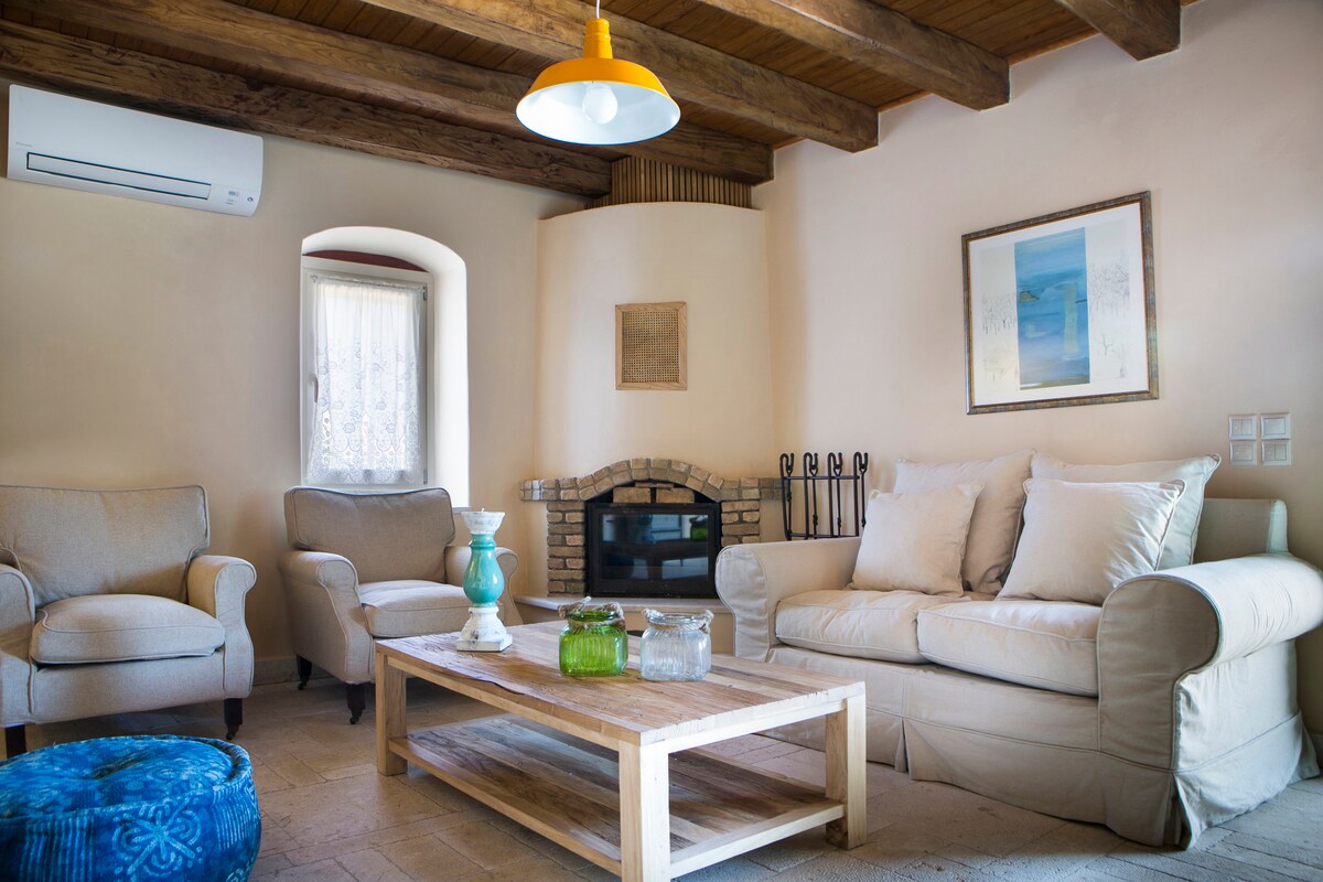 Belle maisonnette de trois pièces,dans le paisible village traditionnel de Makriotika, dans un endroit central de l'île. peut accueillir confortablement une famille ou deux couples . Très proche des lieux d'intérêt touristique (Myrtos, lac Melissani). près d'Agia Efimia où se trouve le marché local,de nombreux cafés et restaurants . Dans le village, il y a un café et une taverne traditionnelle à distance de marche. la maison est co-hôte dans un bâtiment de trois étages et est le premier et le deuxième étage du complexe.