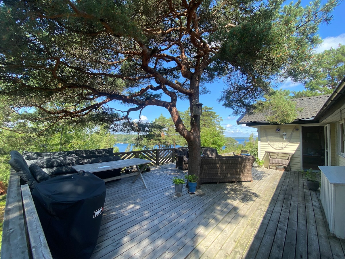 Maison au bord de la mer sur une jetée👍Profitez du bain à remous et du sauna à bois. Fantastique environnement extérieur. Maison moderne et entièrement équipée, décorée avec beaucoup de goût. Expérience parfaite pour ceux qui veulent passer un moment relaxant et magnifique sur l'eau🌞 Si vous voulez être actif : canoë, randonnée dans le parc national voisin, aller courir ou faire du bateau. Tout cela à seulement 30 minutes de Stockholm ! Imaginez passer quelques jours ou quelques semaines dans cet environnement 😀 - Tout l'espace est à votre disposition en tant qu'invités.