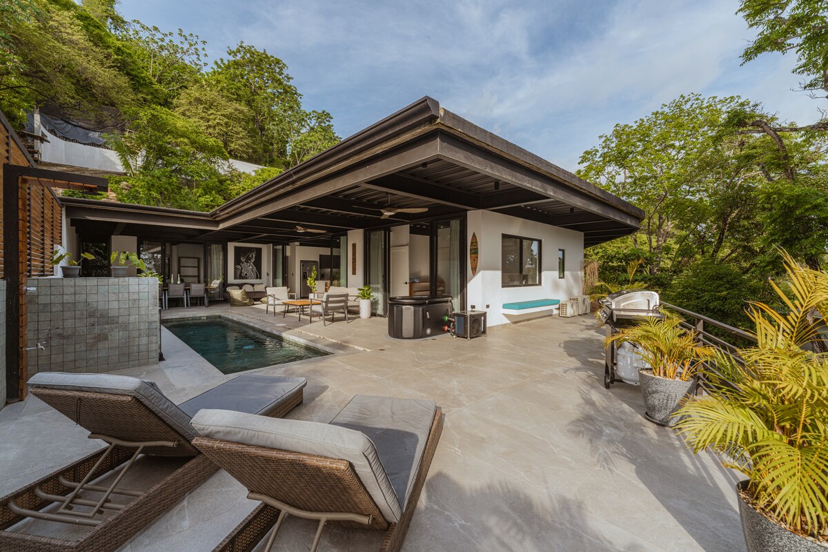 Évadez-vous dans une luxueuse villa de deux chambres avec vue sur l'océan dans la jungle de Santa Teresa, au Costa Rica. À seulement 500 m du surf, cette villa offre un salon spacieux, une cuisine entièrement équipée, une piscine privée, une douche extérieure et des sièges extérieurs confortables avec une vue imprenable. Chaque chambre principale dispose d'une salle de bain privée. Située dans une communauté fermée avec parking privé, cette villa est le mélange parfait d'intimité et de paradis.