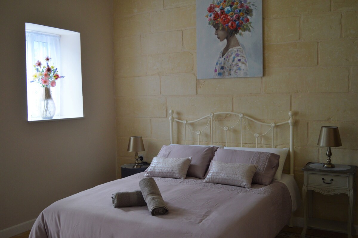Une suite avant naturellement éclairée dans une maison de ville authentique avec un balcon traditionnel offrant une vue sur le jardin local. Parmi ses caractéristiques : carreaux à motifs maltais, murs en pierre calcaire apparents et poutres traditionnelles. La chambre au premier étage est nouvellement décorée et meublée avec une chambre moderne, une salle de bains et une cuisine entièrement équipée comprenant un four, une bouilloire, un grille-pain et un réfrigérateur-congélateur. Également disponibles : lave-linge, climatisation, sèche-cheveux, télévision 32", Wi-Fi, linge de maison frais, serviettes et shampoings.
