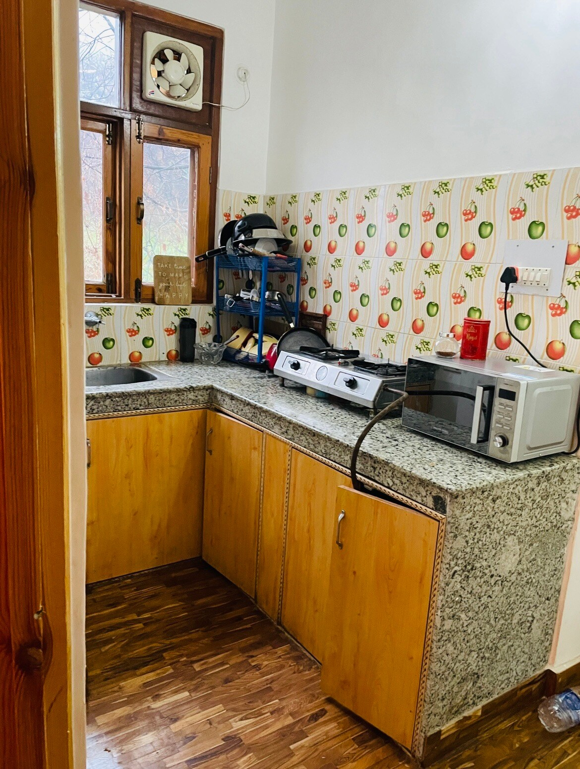2 rooms are on ground floor (front facing Mountaiin view) 2 rooms are on 1st floor with private balcony (front facing Mountaiin view) Apartment is 50mtrs walking distance from parking area staff will take all the luggage to the apartment. and dining area on 2nd floor. Induction ,Kettle ,RO and toaster are placed in the kitchen for self cooking. Quiet Hours --Midnight till 7am. No loud music / Noise /Door banging /shouting post 11.30pm Place is not for late night parties.