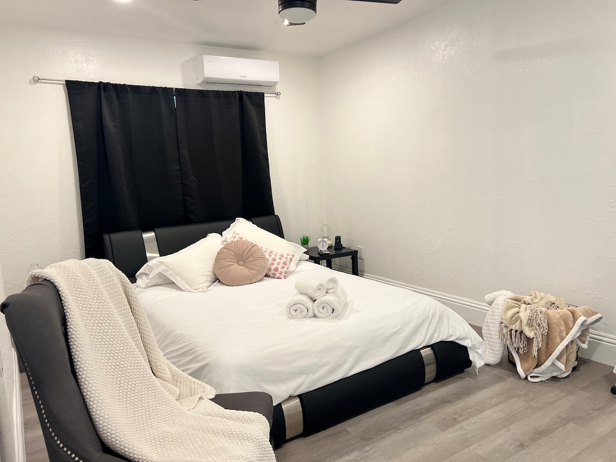 Welcome to your modern Sarasota Guest Suite – Adults Only, Private & Peaceful 🌞 Remodeled on January 26, 2026, this private suite offers a separate entrance and parking for two cars. Enjoy a cozy queen bed, full bathroom, and a kitchenette with microwave, mini‑fridge, coffee maker, and more. Relax on your private patio with a solar shower. Stay cool with a quiet mini‑split A/C. We provide beach essentials: umbrella, chairs, cooler, and towels—perfect for your Sarasota beach days 🌴