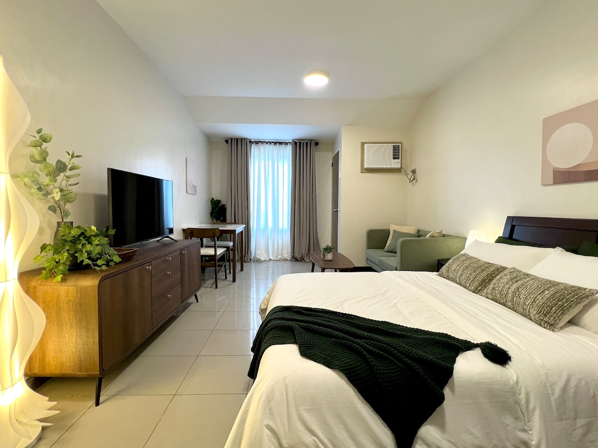 A thoughtfully furnished studio condo conveniently located nearby Cebu's major commercial & business districts - IT Park, Ayala Center & BanTal Corridor. So whether you're visiting Cebu for business or leisure, you're sure to be accessible to your destinations. Take comfort in our homy condo with a great view of the sunrise & the fairways of Cebu Golf Club. Connected to fiber internet, you can still work on-the-go or binge on your favorite Netflix. It will be our pleasure to host you! :)