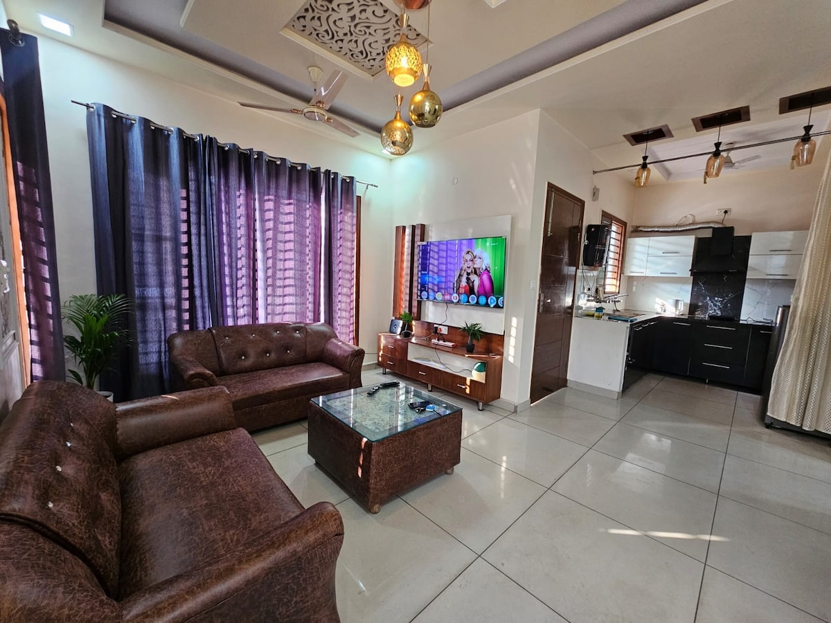 You will get whole Independent flat with total Privacy. * Self Checkin * * Couple Friendly * Amenities like 1. Fully Functional Kitchen 2. Fridge 3. Free parking 4. Power Back Up 5. Wifi 6. Private Entrance Location - Property is next to Nulife Hospital , Kharar. Construction is being done around , so you may face some inconvenience. Kharar has issue of electricity in general . So if power cut is there plz dont complain us . We have nothing in hand to get the electricity.