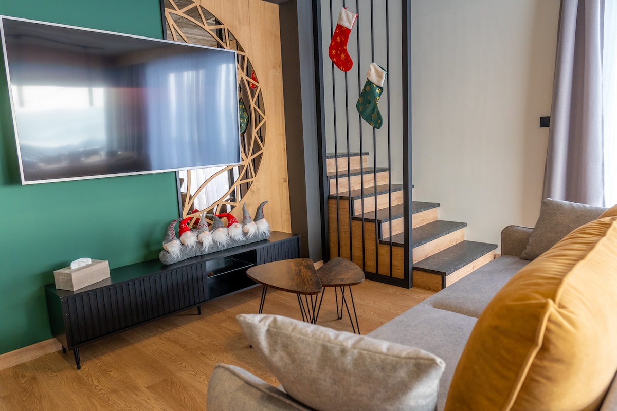 Grand Chalet est une villa de luxe d'une superficie de 250 m2 au cœur de Podhale avec une vue panoramique sur les Tatras. Les voyageurs peuvent profiter de : 4 chambres climatisées, 4 salles de bain, un jacuzzi avec vue, un sauna, une salle de jeux avec billard et PS5, un espace fitness, un poste de travail avec fibre optique, un coin enfants, une cheminée et un barbecue toute l'année. La villa propose un hébergement confortable pour 10 personnes. Parfait pour des vacances en famille, des réunions entre amis ou un travail à distance : confort, modernité et atmosphère unique en un.