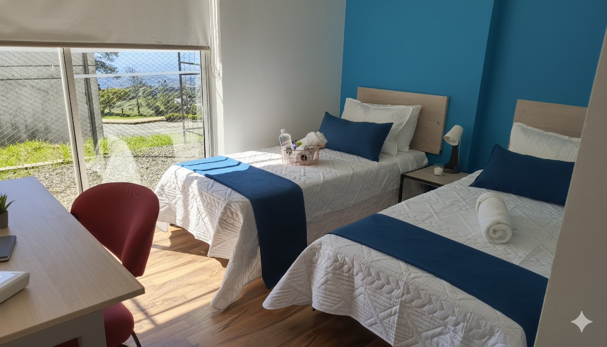 Hab Dos camas · Escritorio ·Baño privado·Vista nat
