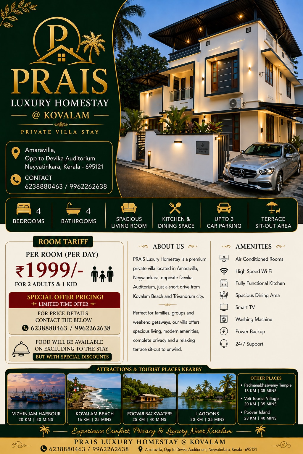 PRAIS Private Villa Stay @ ₹1999 near Kovalam