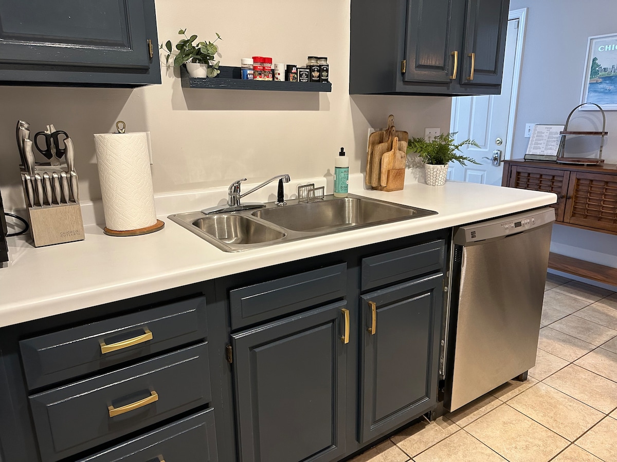 ✤City Haven✤ is a luxury studio in downtown Kankakee, steps from the train station, taverns, and walkable attractions. Enjoy a cozy king bed, fast Wi-Fi, free coffee/tea/cocoa bar, stocked kitchen, & 55” smart TV for a relaxing or work friendly stay. ✶ Across the street from the Kankakee train station ✶ Walkable to local cafes, axe throwing & taverns ✶ 0.3 Miles to St. Mary's Hospital ✶ 1.3 Miles to Riverside Medical Center ✶ 2.9 Miles to Olivet Nazarene University ✶ 55 Miles to Midway Airport