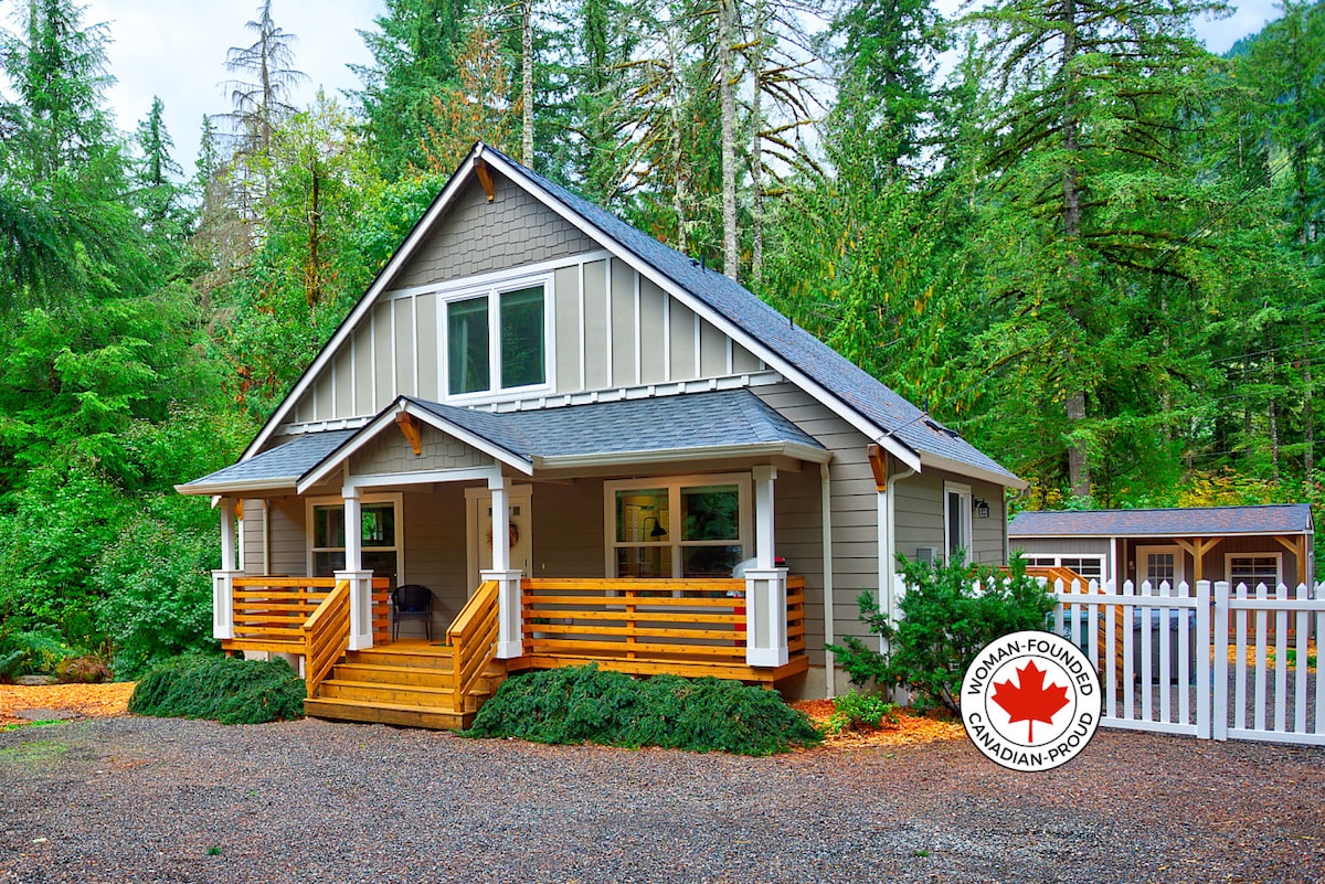 A private couples spa cabin near Mt. Baker for anniversaries, honeymoons, proposals, ski weekends, hiking adventures, and quiet romantic getaways for two. ✔️ Cedar hot tub ✔️ Panoramic barrel sauna ✔️ Outdoor cold-water shower ✔️ Fire pit + indoor gas fireplace ✔️ EV charger ✔️ Backup generator ✔️ 30 mins to Mt. Baker Ski Area ✔️ 10-min walk to Canyon Creek ✔️ 30+ trails nearby 586 sq ft of cozy, modern comfort 🌲✨ Please note: the cabin isn’t suitable for children or infants