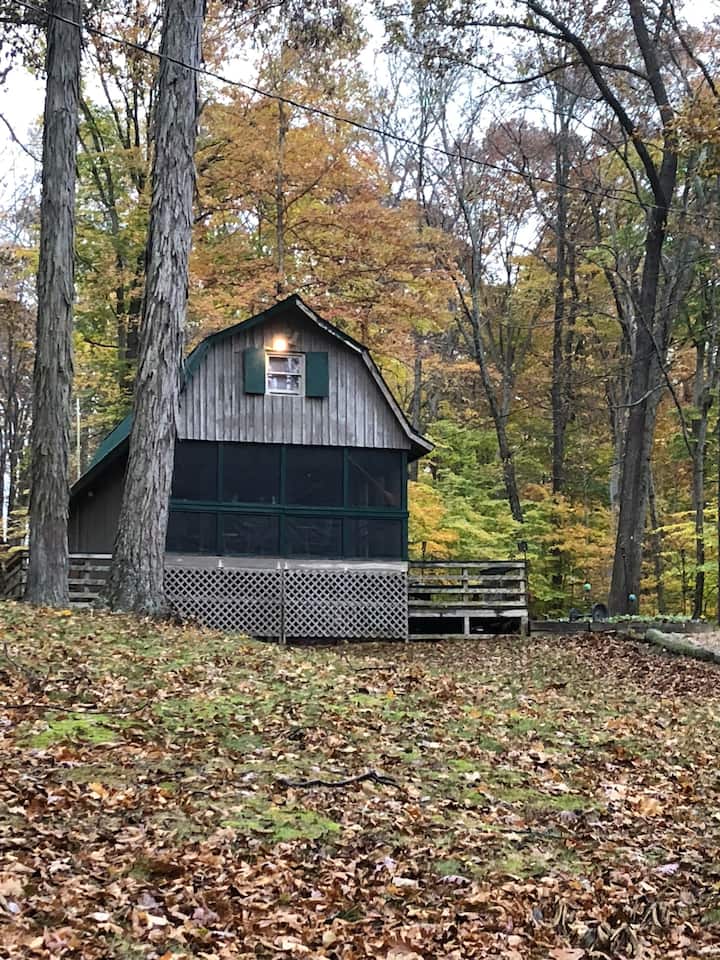 Cabane confortable, porche grillagé dans le sud de l'Indiana