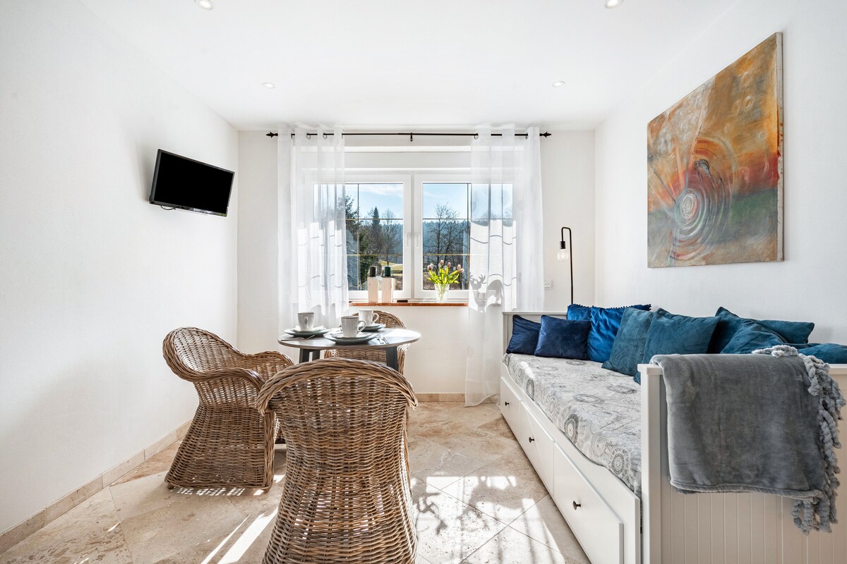 Nette kleine und gemütliche Wohnung für 3-5 Personen, ruhig direkt am Waldrand gelegen mit Kaminofen. Sie eignet sich hervorragend für kleine Familien, Paare oder Alleinreisende um zu entspannen und den Alltag hinter sich zu lassen. In der vollausgestatteten Wohnung lässt es sich gut mit zwei Erwachsenen und einem Kind im Schlafzimmer übernachten. Es besteht die Möglichkeit zwei weitere Schlafplätze auf dem Sofa zu schaffen.