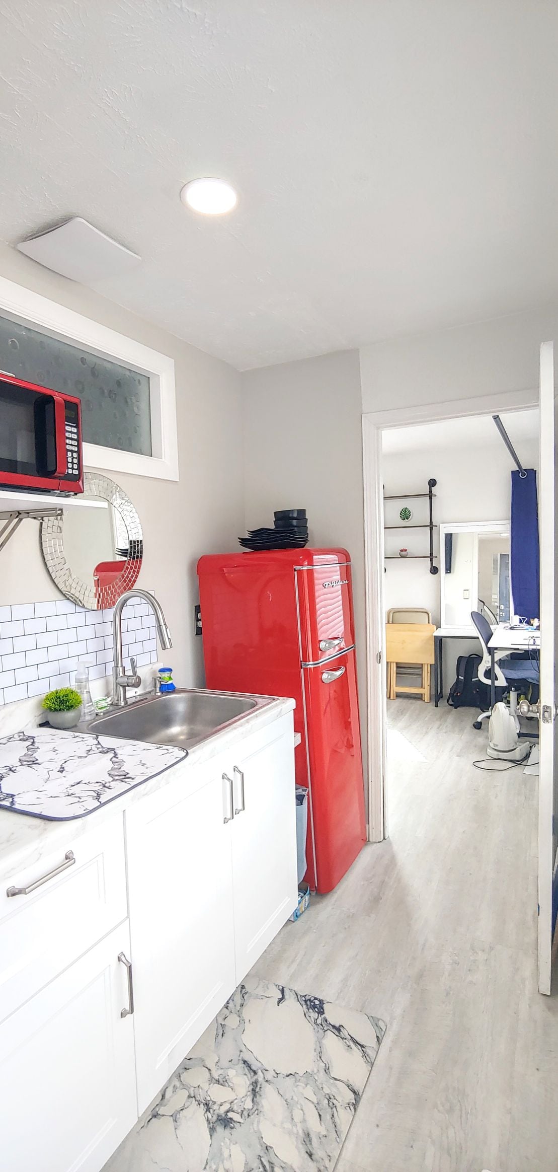 Cette suite attenante est simplement aménagée, lumineuse et propre. Nous sommes dans un petit quartier calme, à un peu moins de deux miles de la place historique de Marietta. La chambre avec salle de bains attenante (douche) est à l'arrière. À travers les doubles portes-fenêtres se trouve un salon et une cuisine complète avec les éléments de base fournis. L'entrée privée à l'avant mène à l'abri auto. Nous avons hâte de vous accueillir comme voisin, ne serait-ce que pour une nuit ou deux !