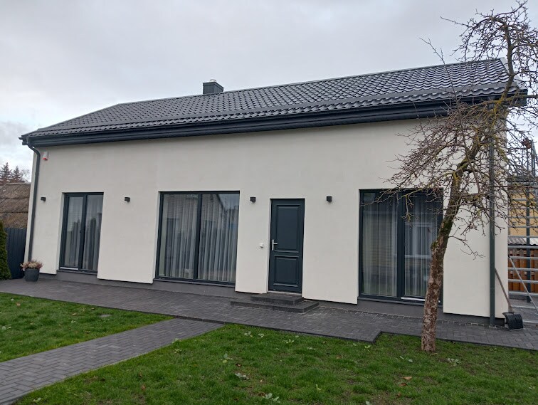 Nouvelle maison en bois de 75 mètres carrés où chambre, salon avec cuisine, chambre WC. Une grande terrasse avec des meubles confortables est fournie pour les voyageurs, il y a un grand barbecue, un jacuzzi dans la propriété. La maison peut accueillir jusqu'à 5 personnes. Le gîte est parfait pour les voyageurs étrangers, juste après être entré en Lituanie depuis la Pologne. Balançoires pour enfants, bac à sable, trampoline, billard, karting. Le lac Oria est accessible à 7 km avec un accès pratique pour les adultes et les enfants. Nous appeler.