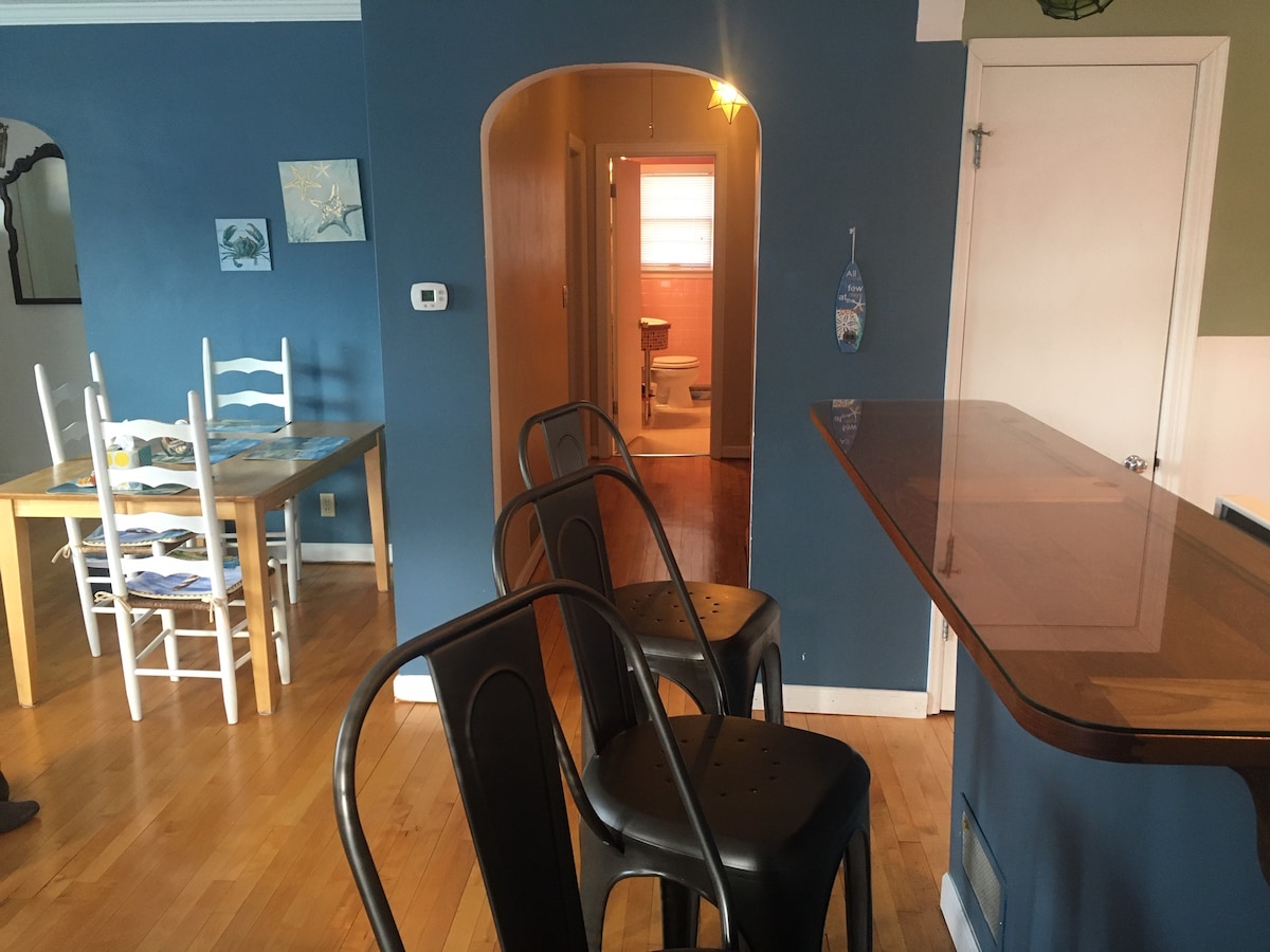 Cette maison se trouve à quelques pas d'une plage publique, d'une marina de 230 places, de parcs, de plages, de restaurants, de bars et de magasins. Vous pouvez garer votre voiture et ne jamais avoir à conduire, en profitant du paysage, du shopping, de la natation et de la restauration. La télévision n'a que des chaînes locales, pas de câble. Menominee est à 50 miles au nord de la ville de Green Bay sur la baie de Green Bay. Le comté de Door est à 2 heures en voiture et à une heure en bateau de Menominee. Il s'agit d'une jolie maison de 3 chambres, 1,5 salles de bain dans le centre-ville de Menominee dans une rue calme.