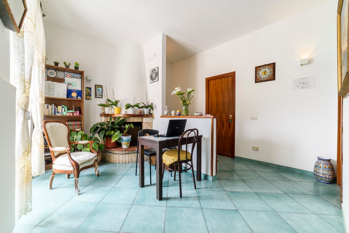 La maison avec entrée indépendante fait partie d'un bâtiment « rural » du début du XXe siècle. Salle de bain privée, lit double, canapé-lit, réfrigérateur de chambre, TV, WI-FI et une véranda romantique avec « vue de carte postale » où vous pourrez prendre un verre, une infusion, prendre le petit déjeuner ou même vous inspirer et l'utiliser comme « poste de travail ». L’accès est facile depuis la rue ou le parking, (éventuellement disponible), à travers le jardin de citronniers, la cour privée et quelques marches.