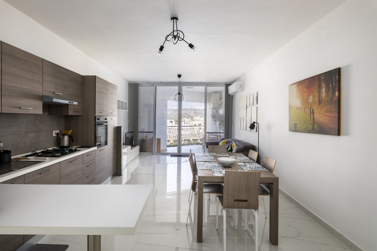 À deux pas de la baie de la mer, ce tout nouvel appartement offre une vue imprenable sur la baie de Maralforn. L'emplacement a une excellente atmosphère, est entouré de bars et de restaurants, d'installations de plongée, de sports nautiques, de supermarchés, d'arrêts de bus, d'un centre de vélos, d'une pharmacie et d'une plage juste en face. L'appartement est moderne, confortable et élégant, et offre une vue fantastique sur les zones d'intérêt de Marsalforn.
