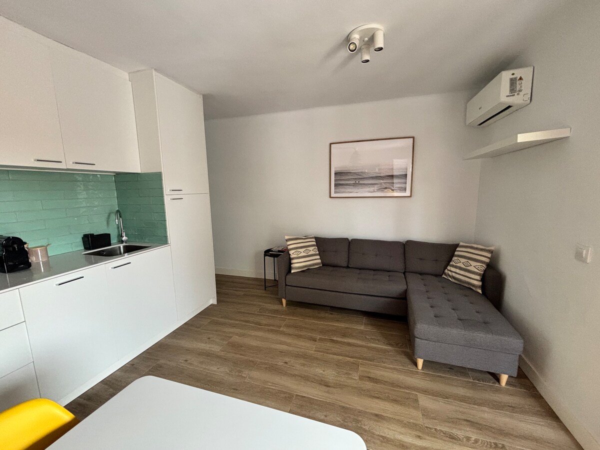 Studio récemment rénové situé à 300 mètres de la plage de Platja del Racó à Platja de Pals. Situé dans le quartier le plus ancien, à seulement 5 minutes à pied de la plage et très proche du Club Golf de Pals (15 min à pied). Vous trouverez tout ce dont vous avez besoin : supermarchés, restaurants, souvenirs... L'appartement dispose d'un petit espace à l'entrée pour garer une voiture. Salle à manger, cuisine ouverte avec réfrigérateur et four, salle d'eau avec douche. À l'entrée, il y a un patio de 10 m2.