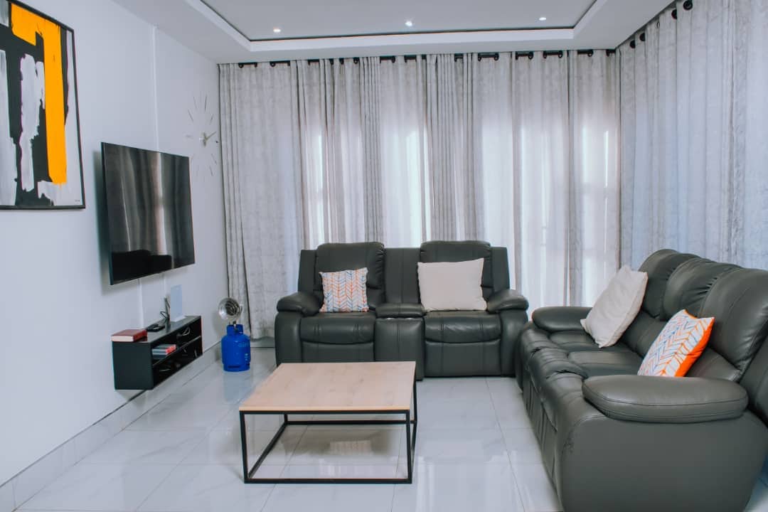 Profitez en famille de ce fabuleux logement qui offre de bons moments en perspective. Appartement de 2 chambres meublé avec goût avec salon/salle à manger ouvert, salle de bain et cuisine équipée avec des appareils modernes. - Situé dans le quartier d'affaires et à 5 minutes à pied des principaux supermarchés. - Femme de ménage pour le nettoyage et le service de blanchisserie - Service de jardinage - Sécurité - Parking sécurisé. - Wi-Fi. - Électricité, eau et alimentation de secours en cas de délestage ou de coupures d'eau. - Bouquet complet DSTV - Showmax - Netflix