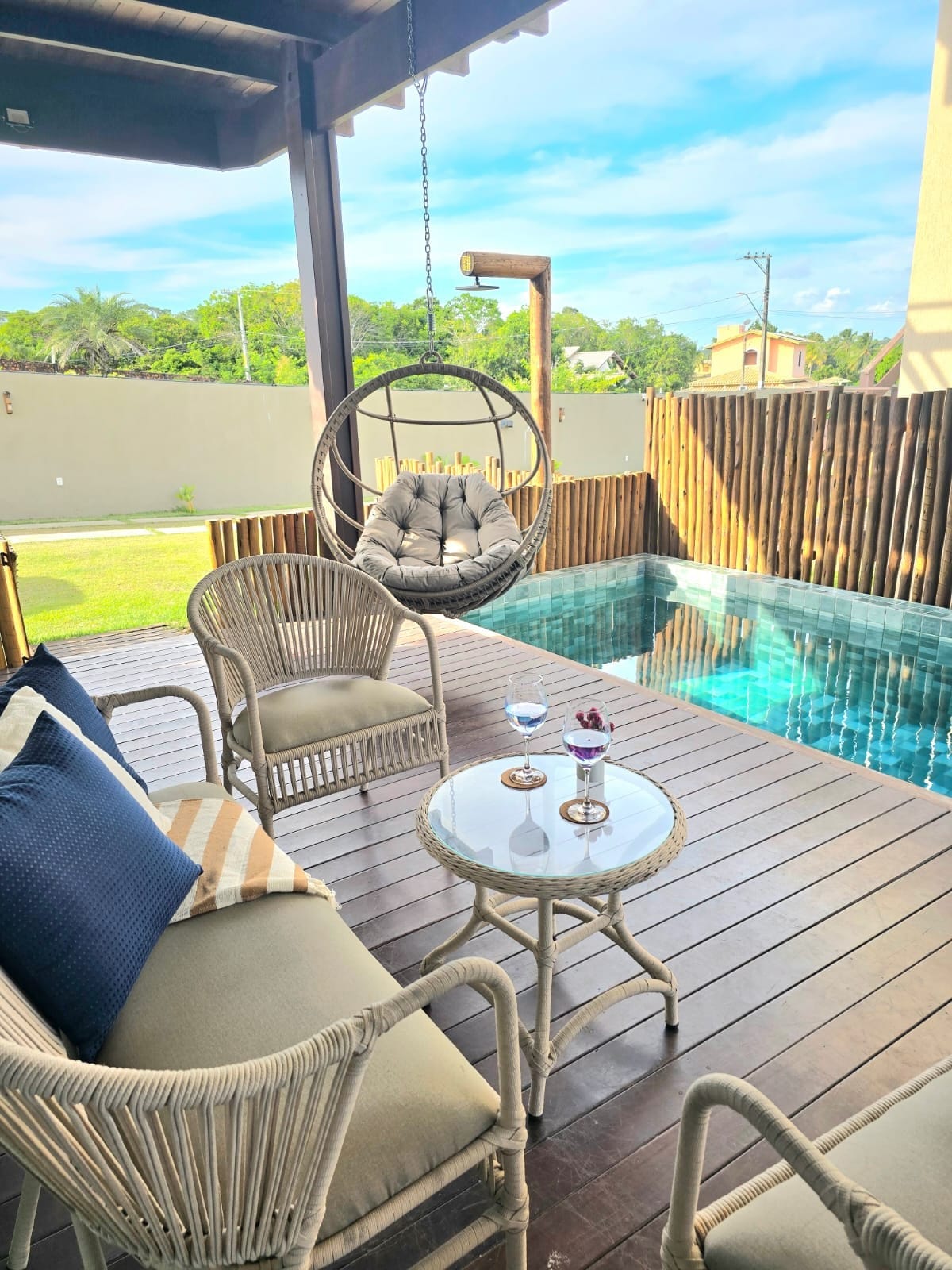 Magnifique appartement de type Vilage, duplex entièrement décoré et équipé. Près de tout ! Vila de Imbassaí, rivière, restaurants... La propriété dispose de 03 chambres avec 05 smart tv, lits super confortables, 04 lits climatisés, 04 salles de bain, PISCINE PRIVÉE, balcon gastronomique avec une brasserie, barbecue, minibar, purificateur d'eau glacée, verres Stanleys et tout l'équipement nécessaire ! 03 places de stationnement dans la copropriété. Dans la copropriété, il y a aussi une piscine, un barbecue...