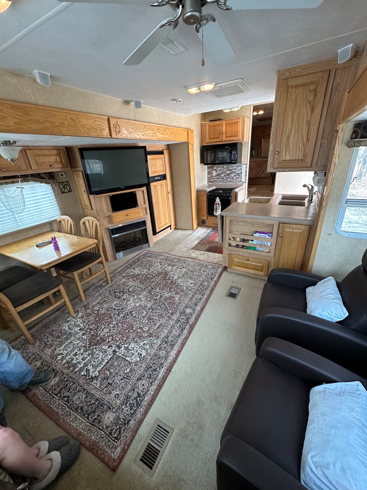 Détendez-vous dans la nature en pêchant ou en nageant dans un quai privé. Faites des grillades sur la grande terrasse et profitez d'un foyer ou d'une cheminée confortable. Rampe de mise à l'eau à proximité. Le camping-car dispose d'une cuisine avec un grand îlot central. Grande suite parentale avec lit king size et télévision. Lit gigogne dans le séjour avec 2 fauteuils inclinables et une télévision grand écran. Lave-linge et sèche-linge inclus. Prêt pour les 4 saisons. À moins de 1 mile de la ville.