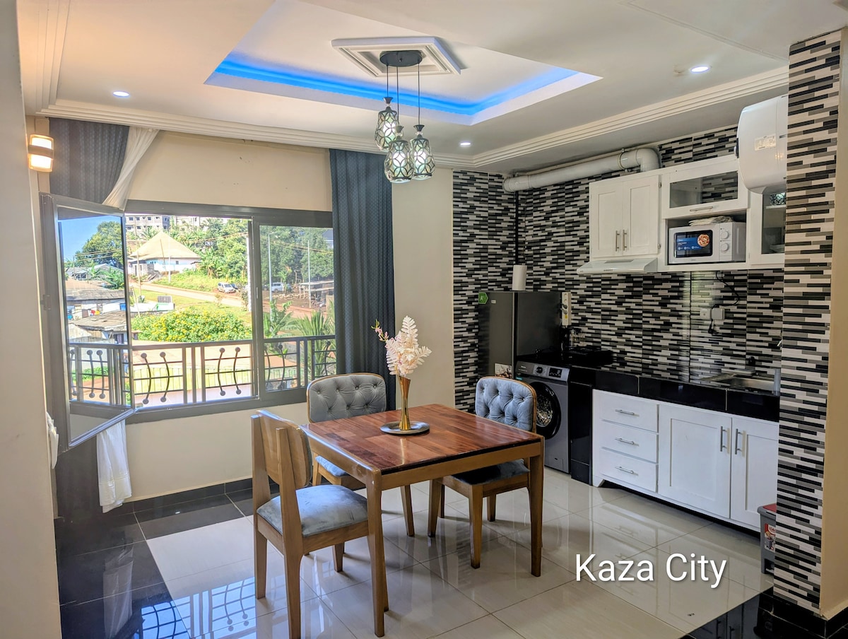KAZA city met à votre disposition des appartements deux chambres de 70 m² ultra modernes dans un bloc d'appartement à l'architecture remarquable au centre de la ville de Bafoussam. Espace idéal pour un séjour en groupe ou en famille. Vous bénéficierez d'un accès facile à tous les sites et commodités depuis ce logement central.