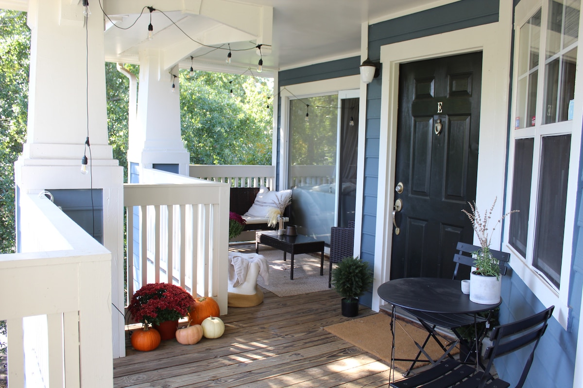 Bienvenue dans votre duplex confortable au cœur de la Plaza Midwood, Charlotte ! Parfait pour les couples, les voyageurs en solo ou les petits groupes, cet espace élégant se trouve à quelques minutes des meilleurs restaurants, brasseries et art local. Profitez d'un intérieur lumineux, d'une cuisine équipée et d'une cour arrière paisible avec des guirlandes lumineuses et un foyer. La maison dispose d'une connexion Wi-Fi, d'un lit king size et d'une cour arrière partagée avec le co-hôte. Profitez de l'exploration de la région à pied, en scooter ou un Uber rapide jusqu'à Uptown, NoDa ou South End.