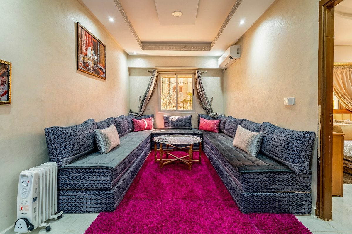 Séjournez en plein cœur de Marrakech dans notre appartement 2 chambres et 2 salles de bain. Profitez d'Une literie Simmons haut de gamme, WiFi haut débit (fibre optique) et d'une décoration moderne avec un bassin privé. Cuisine entièrement équipée, baignoire élégante, et douche italienne. À quelques pas de la place Jemaa el-Fna, du Plazza, et du Carré Eden. La piscine n’est pas chauffée. NB: Les couples marocains non mariés ne sont pas autorisés.