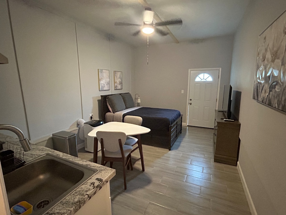 Casa Planta, is a tropical garden inspired oasis. Your getaway begins with a relaxing, peaceful walk through a lush, hidden tropical garden, surrounded by lots of greenery leading to your private entrance. From walking the grounds with a nice beverage, enjoying dozens of different plant species Florida has to offer, to cooling off by the pool, you can just relax and exist! This 2 bedroom 1 bath suite is attached to the main house but completely blocked off from it and has a private entrance.