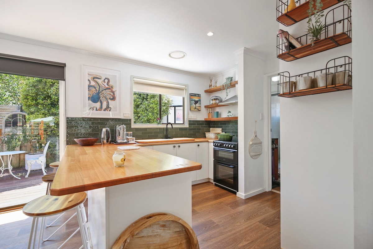 Ross Farm Cabin est une retraite soigneusement conçue juste à l'extérieur de Meeniyan, au cœur du South Gippsland. Restauré avec du bois chaud et des détails artisanaux, c'est une escapade parfaite pour les célibataires ou les couples qui cherchent à ralentir. Plongez dans le bain de bois artisanal, cuisinez avec des herbes fraîches, ramassez les œufs des poules ou rassemblez près de la cheminée sous les étoiles. Avec Wilsons Promontory et des restaurants de la ferme à la table à proximité, ce séjour est conçu pour le repos, la reconnexion et les plaisirs simples.