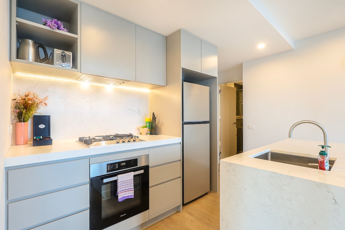 Appartement de luxe et au design moderne, qui est une opportunité résidentielle au-delà de tout ce qui est encore visible dans le quartier des affaires de Melbourne. À distance de marche de partout, supermarché juste en bas, restaurants aux alentours. Emplacement le plus pratique dans le quartier des affaires. Nous fournissons des lits et des matelas de haute qualité, une literie au niveau de l'hôtel. Four et gazière de marque Miele. Télévision intelligente et environnement confortable dans le salon. 2 chambres et 2 salles de bain, adaptées en famille et entre amis.