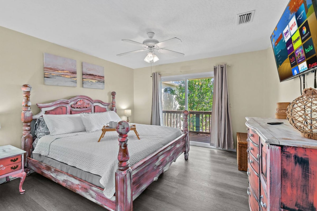 This STUNNING 3 bedroom, 5 beds, 2 full bathrooms house is steps from Cocoa Beach. This is a dream vacation with a lot of space and all of the comforts of home. Dishwasher, washer/dryer, air hockey table, toys and much more! Restaurants and unique shops are 1.6 miles away. Shop, eat, surf and then relax in our home! Did I mention the beach is across the street? Ron Jon’s is 4 miles away and Port Canaveral is 8 miles away! Thank you for supporting local! Check out our 1000’s of reviews.