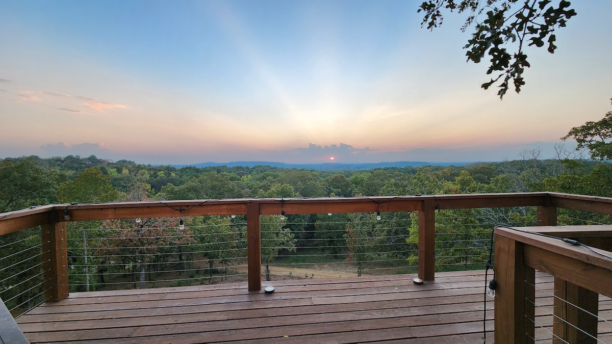 Évadez-vous dans cette maison sereine de 3 chambres et 2 salles de bain, parfaite pour la détente et le divertissement. Avec 2 chambres queen et une 3e avec 2 lits jumeaux superposés, il y a de la place pour tout le monde. Détendez-vous dans les deux espaces de vie, l'un avec un foyer au bois confortable et un canapé-lit. L'aménagement ouvert est idéal pour les rassemblements. Profitez des porches extérieurs, avec de nombreux sièges, une cuisine extérieure, un foyer, une véranda et une terrasse d'observation. Du lever du soleil à l'observation des étoiles, imprégnez-vous d'une vue à 360 degrés à couper le souffle.