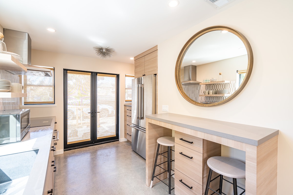 Très agréable, rénové, 700 pieds carrés. Copropriété moderne du milieu du siècle au cœur de Palo Alto. Une grande chambre, une salle de bain, une cuisine bien approvisionnée avec tous les nouveaux appareils, une belle terrasse arrière privée... tout cela et à seulement 3 pâtés de maisons de University Ave (restaurants et magasins fabuleux), à 3 minutes à pied de CalTrain, à 10 minutes à pied du campus de Stanford (ou prenez la navette de Stanford à seulement 2 pâtés de maisons) ! Pas besoin de conduire bien qu'il y ait un espace pour 2 voitures, dont une couverte.
