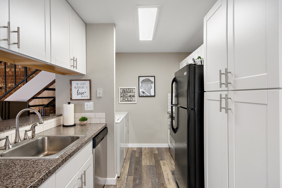 Appartement de 2 chambres très propre, récemment rénové. Vous ne voudrez plus partir ! Chaque aspect de l'espace a été méticuleusement conçu en gardant votre séjour et votre confort à l'esprit. À quelques minutes en voiture ou à pied de nombreux magasins, restaurants et divertissements locaux. Si vous préférez rester à proximité, installez-vous confortablement à la maison ou faites une pause à l'extérieur sur le patio. La seule chose qui nous manque, c'est vous ! Profitez d'un logement élégant et central.