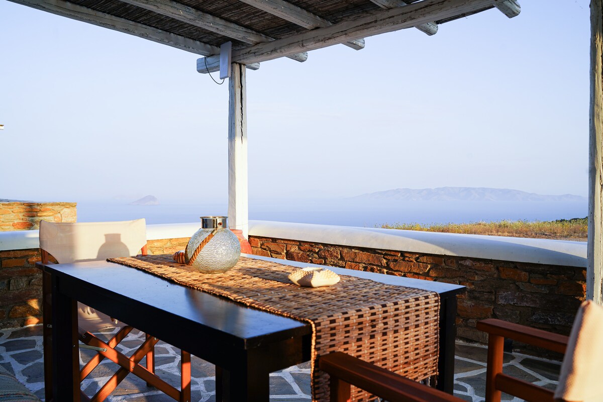C'est un plaisir de vous accueillir dans ma maison traditionnelle de Cythnos. La maison même est située exactement au centre de l'île, à quelques mètres du village traditionnel de Dryopida. Par exemple, cet hébergement se trouve à 8 km du port de Merichas, à 6 km de la capitale (Chora), tandis que la plage la plus proche est à 3 km (Lefkes).