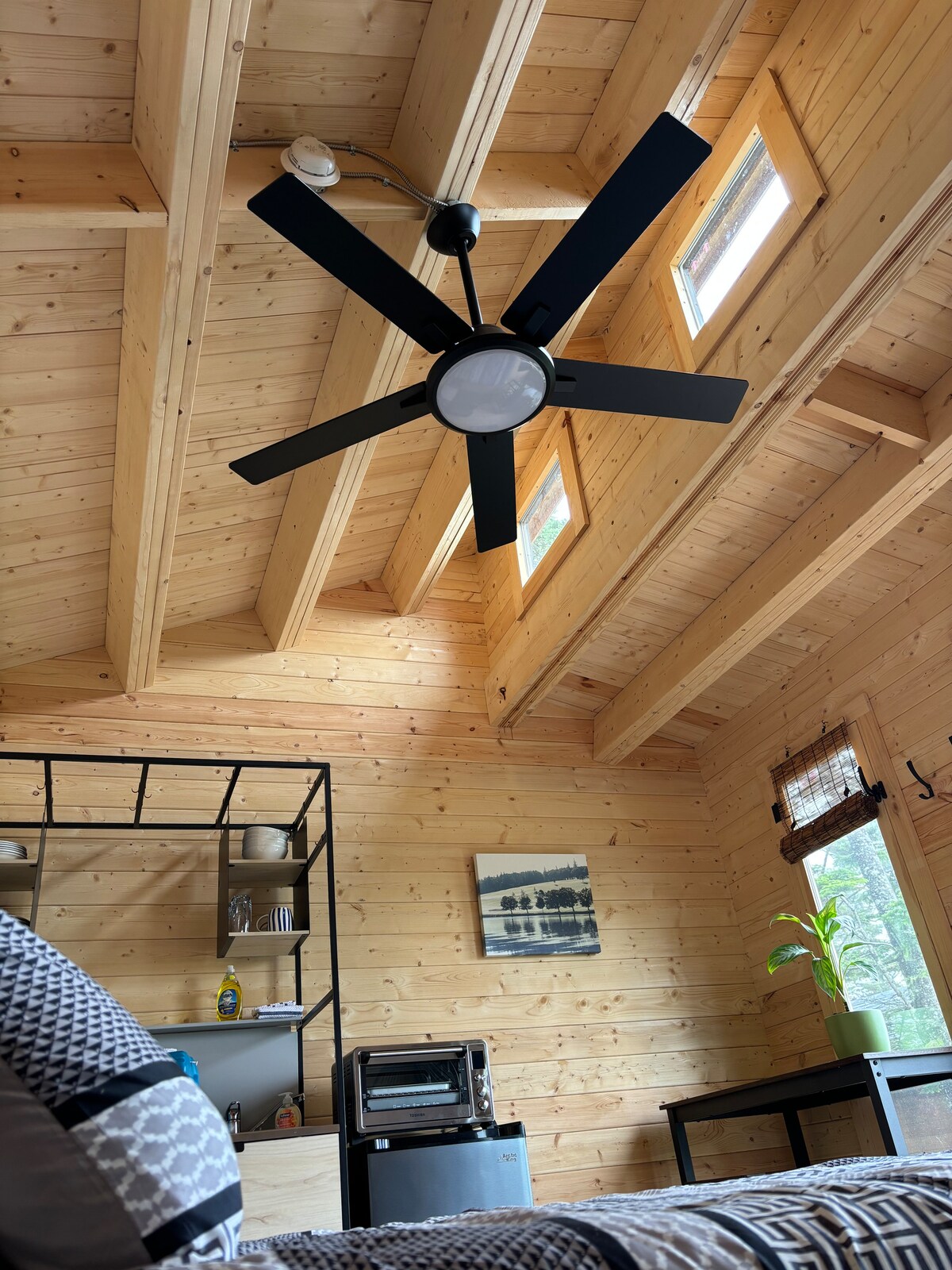 Détendez-vous dans ce chalet spacieux au bord du lac avec pompe à chaleur et chauffage au sol, neuf, août 2023. La chambre séparée avec lit Queen Size, dispose d'une belle porte coulissante de grange. Le salon principal dispose d'un canapé convertible Queen Size. Profitez de magnifiques couchers de soleil ou d'un feu de camp au bord du lac. Pour votre plaisir supplémentaire, un jacuzzi pour six personnes, niché dans les bois sous un magnifique belvédère, partagé avec un chalet pour deux personnes. Utilisation gratuite des kayaks, des planches de paddle, des VTT, baignade dans le lac ou promenades de loisirs.