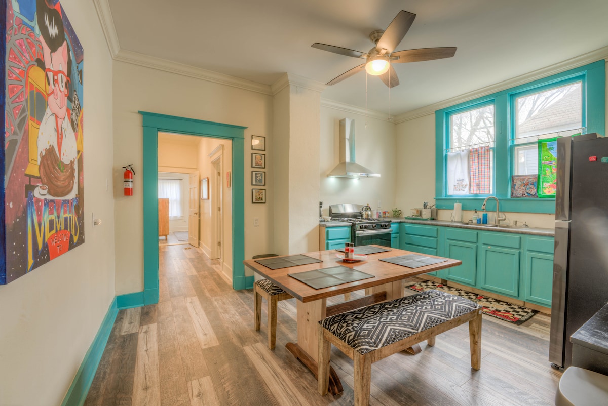 • 1350 sq ft. duplex apartment • See Overton Square from front porch! • Complete renovation completed January 2020 • 10-minute drive downtown • Fully equipped kitchen • Walkscore - 82 • 1 Gigabit WiFi Internet • Extremely safe neighborhood When we say you can see Overton Square from the porch we aren't kidding! Location isn't all there is to love about our place though. Fast WiFi, a complete renovation with unique, eclectic decor. True Midtown Memphis!