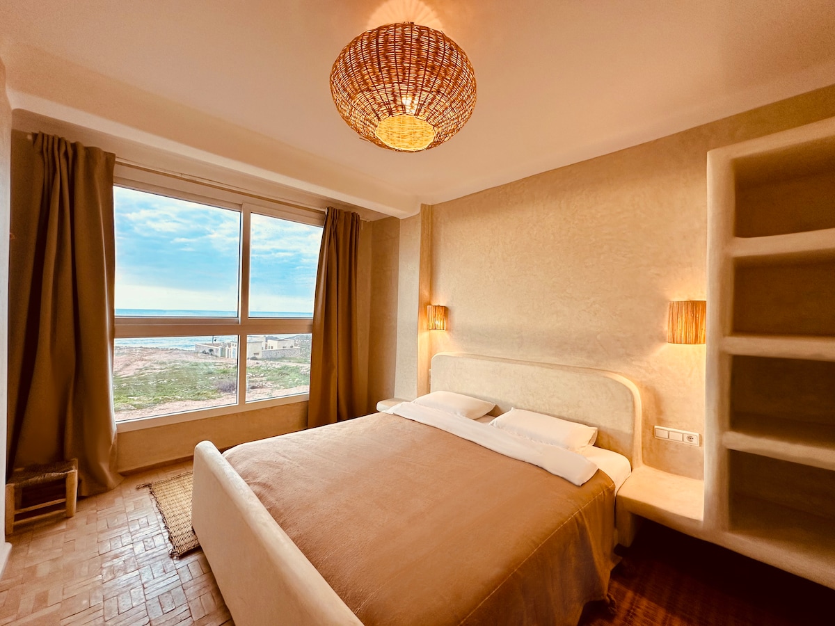 Bienvenue dans notre studio parfait pour une escapade de surf, situé au dernier étage d'un immeuble privé à Mirleft, offrant une vue imprenable sur l’ocean . Cet espace tout-en-un est idéal pour une escapade de surf en solo ou en couple. Le studio comprend un coin nuit confortable avec lit double et simple, une kitchenette bien équipée, le tout dans une seule pièce harmonieuse. À deux pas, profitez de la terrasse de l’immeuble, parfaite pour admirer le coucher de soleil.