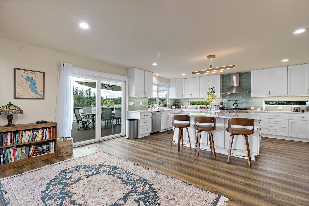 Chalet de ferme moderne sur le lac Sammamish - 2 lits / 2 salles de bain avec climatisation et foyer au gaz. Les deux chambres sont équipées de couettes et d'oreillers moelleux. Profitez de planchers de bois franc, d'une cuisine bien équipée avec de nouveaux appareils, d'un lave-linge/sèche-linge, d'une salle à manger pour 6, d'un canapé-lit, d'une télévision de 55" et d'un bar à café. Détendez-vous en dînant avec vue sur le lac, faites du kayak sur le rivage ou explorez le sentier du lac Sammamish juste devant votre porte. Les chiens bien élevés sont les bienvenus !