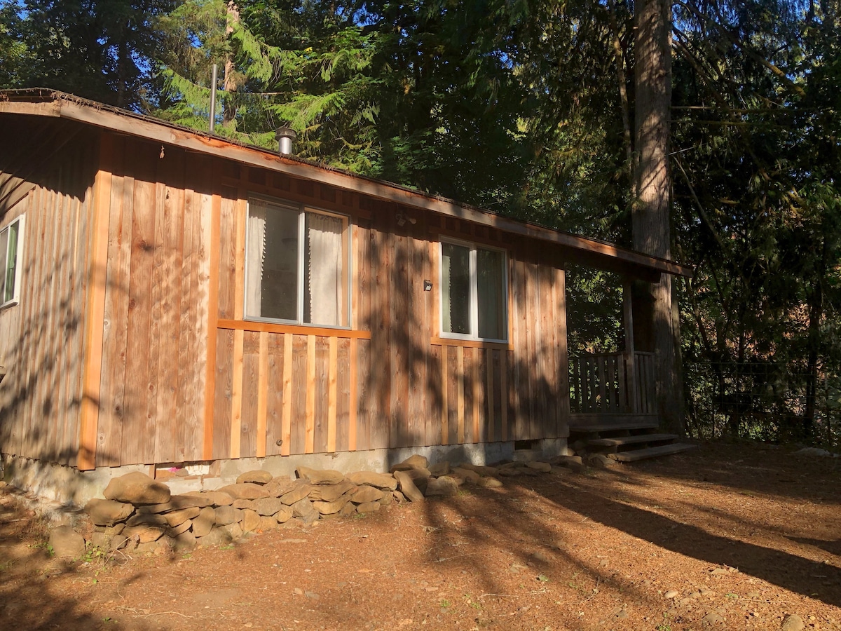 A quaint, rustic spring fed private cabin (over 100 years old!) on an organic farm, less than 5 minutes from Hwy 30 (en route to the coast), surrounded by cedar forest and wildlife. A peaceful alternative to crowded coastal vacations. Set among seasonal gardens with sheep and ducks sometimes nearby, the clean, well-cared-for cabin reflects the natural rhythms of farm life. Your reservation supports our local food system. ONLY biodegradable, scent-free products allowed.