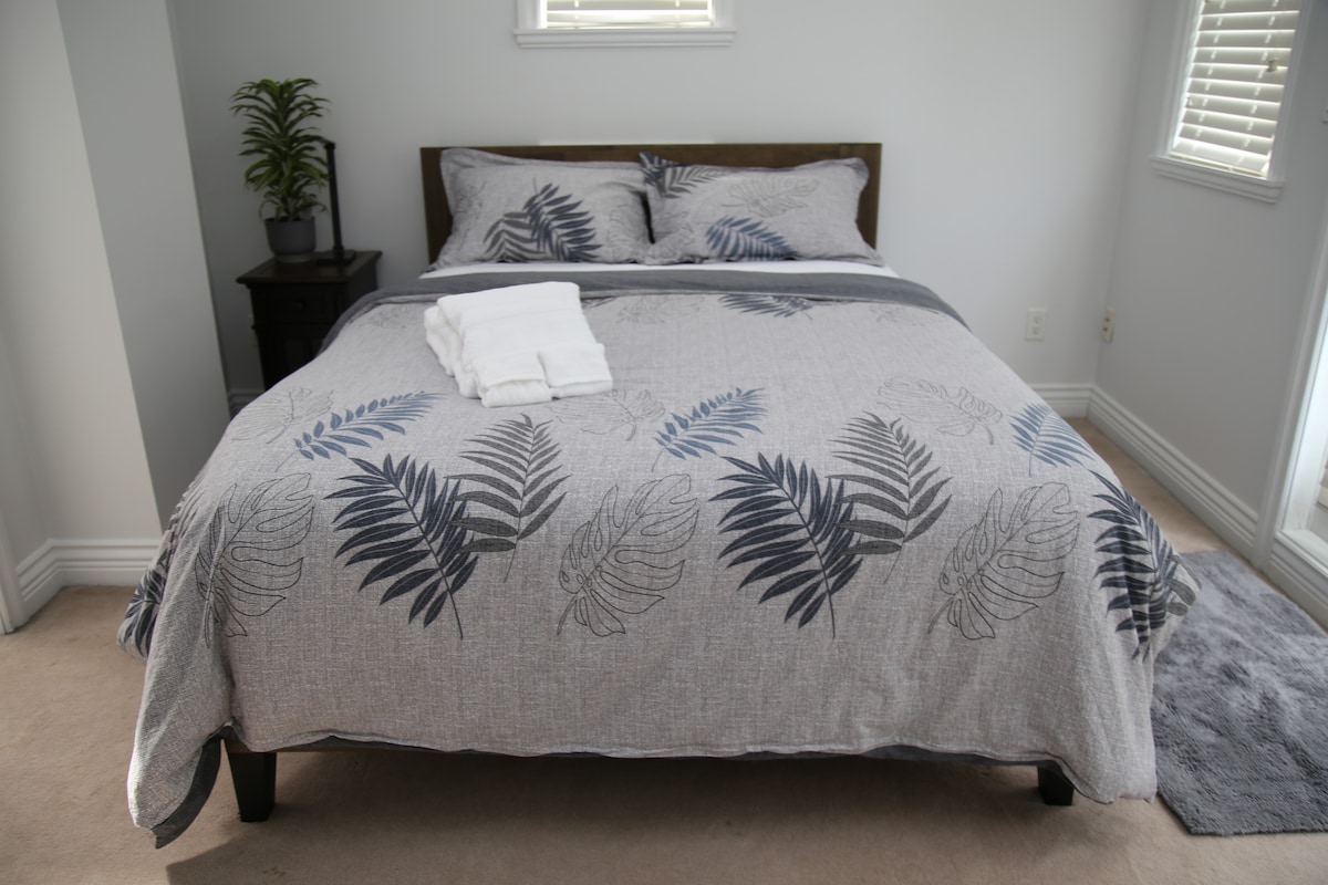 Nous sommes spécialisés dans les séjours de courte durée, de dernière minute et rapides. L'entrée sans clé rend l'arrivée sans tracas, même tard dans la nuit. Bienvenue dans votre propre chambre Queen avec salle de bain privée. Nous sommes heureux de vous accueillir dans cette « suite nounou » dédiée, chez nous. Entrée séparée dans le jardin arrière, salle de bain attenante. Bureau de la station de travail. Équipements de base de la kitchenette : réfrigérateur, micro-ondes, vaisselle de base, bouilloire. (pas de cuisine) Espace simple. Tout ce dont vous avez besoin pour un séjour reposant dans la belle ville de Vancouver.