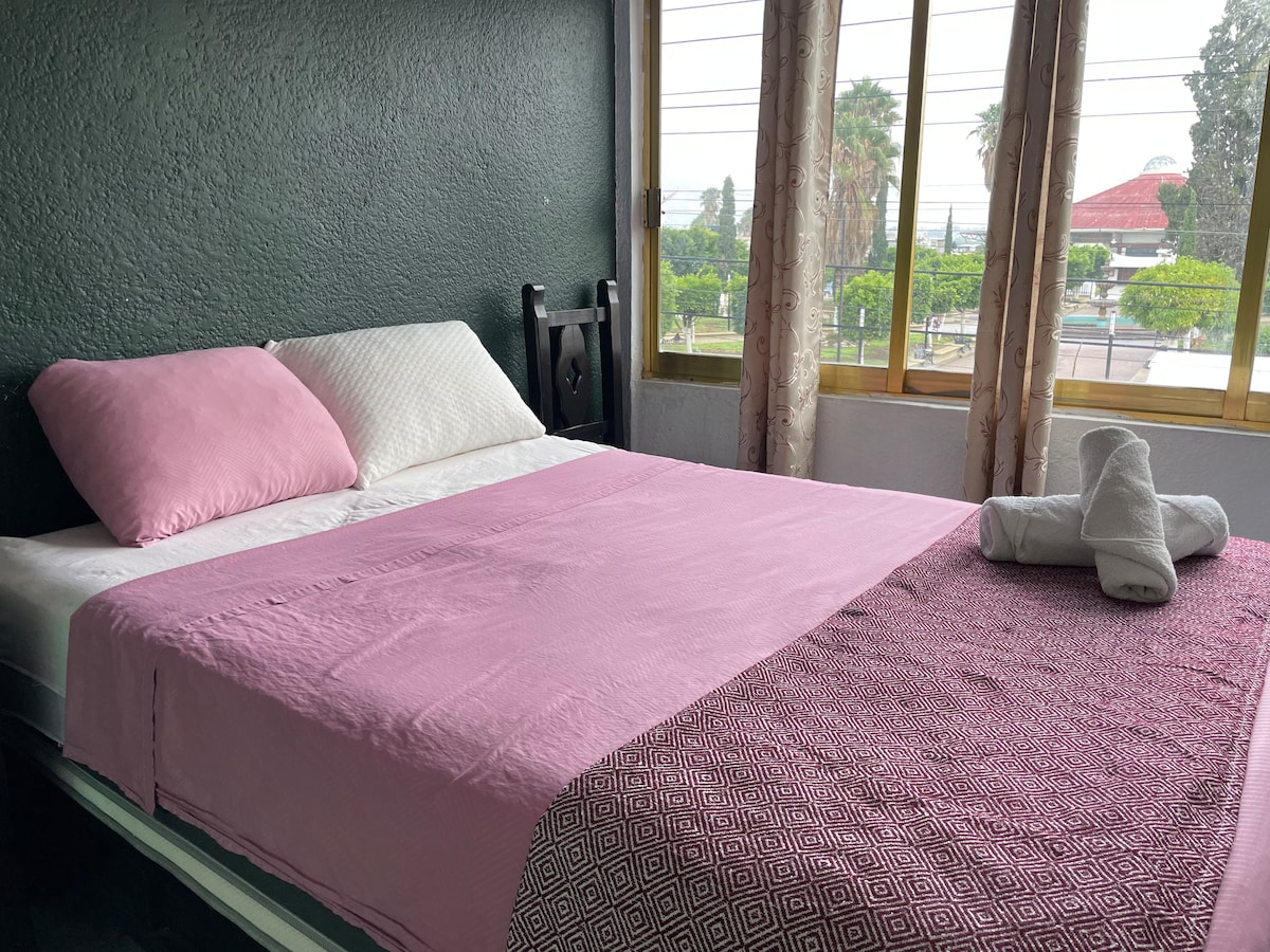 Notre appartement confortable et spacieux, avec toutes les commodités et services vous fait vous sentir comme chez vous pendant vos vacances ou votre voyage d'affaires. Il dispose de plusieurs détails spéciaux tels que la vue panoramique, le jacuzzi et le parking privé pour une voiture compacte. Il est situé à 15 minutes à pied du centre ou à 5 minutes en voiture. Il est à 10 minutes en voiture de la zone archéologique des Atlantes et se trouve à 3 pâtés de maisons de la route Tula - Tepeji.