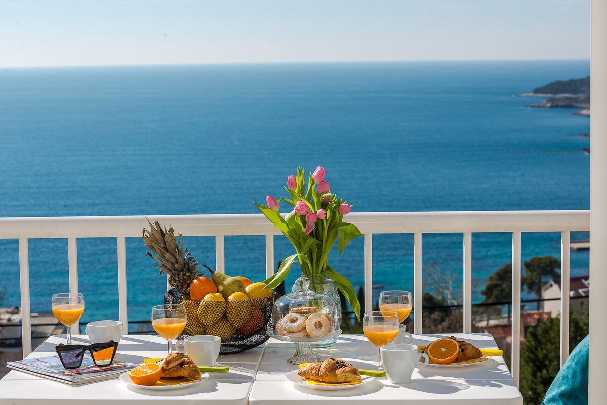 Profitez d'une vue imprenable et unique sur la vieille ville de Dubrovnik et la Méditerranée depuis votre balcon. Appartement meublé avec goût, confortable, spacieux et lumineux dans un quartier calme et charmant à flanc de colline, avec de nombreux équipements et un parking réservé en face. L'appartement dispose d'une salle de bains et d'une cuisine récemment rénovées, et est équipé d'une connexion Wi-Fi, de la climatisation et du chauffage, de la télévision par câble, d'un haut-parleur Bluetooth, d'un lave-linge et d'un sèche-linge, de matelas et d'oreillers confortables, de linge de lit en coton, d'articles de toilette de luxe et plus encore.