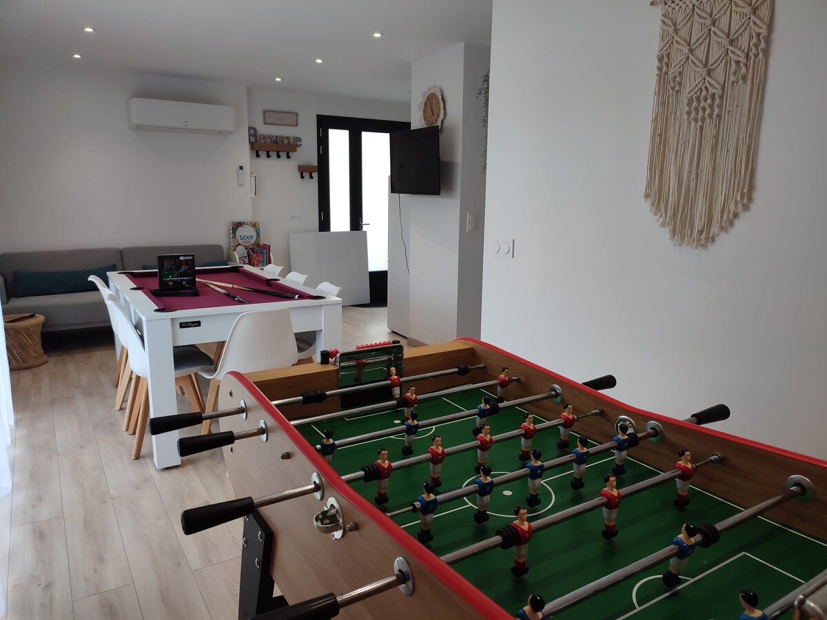 Corps de ferme rénové 300m² au Sud Bergerac en Dordogne, au cœur de notre exploitation viticole avec son chai. 20 couchages, 6 chambres, 3 salles de bain, draps et serviettes fournis, cuisine équipée, grand salon 65 m², salle de fitness, piscine, terrain de pétanque, table ping-pong, panier de basket, divers jeux de pleines aires, jardin, animaux, idéal familles ou amis. Calme, nature et authenticité.