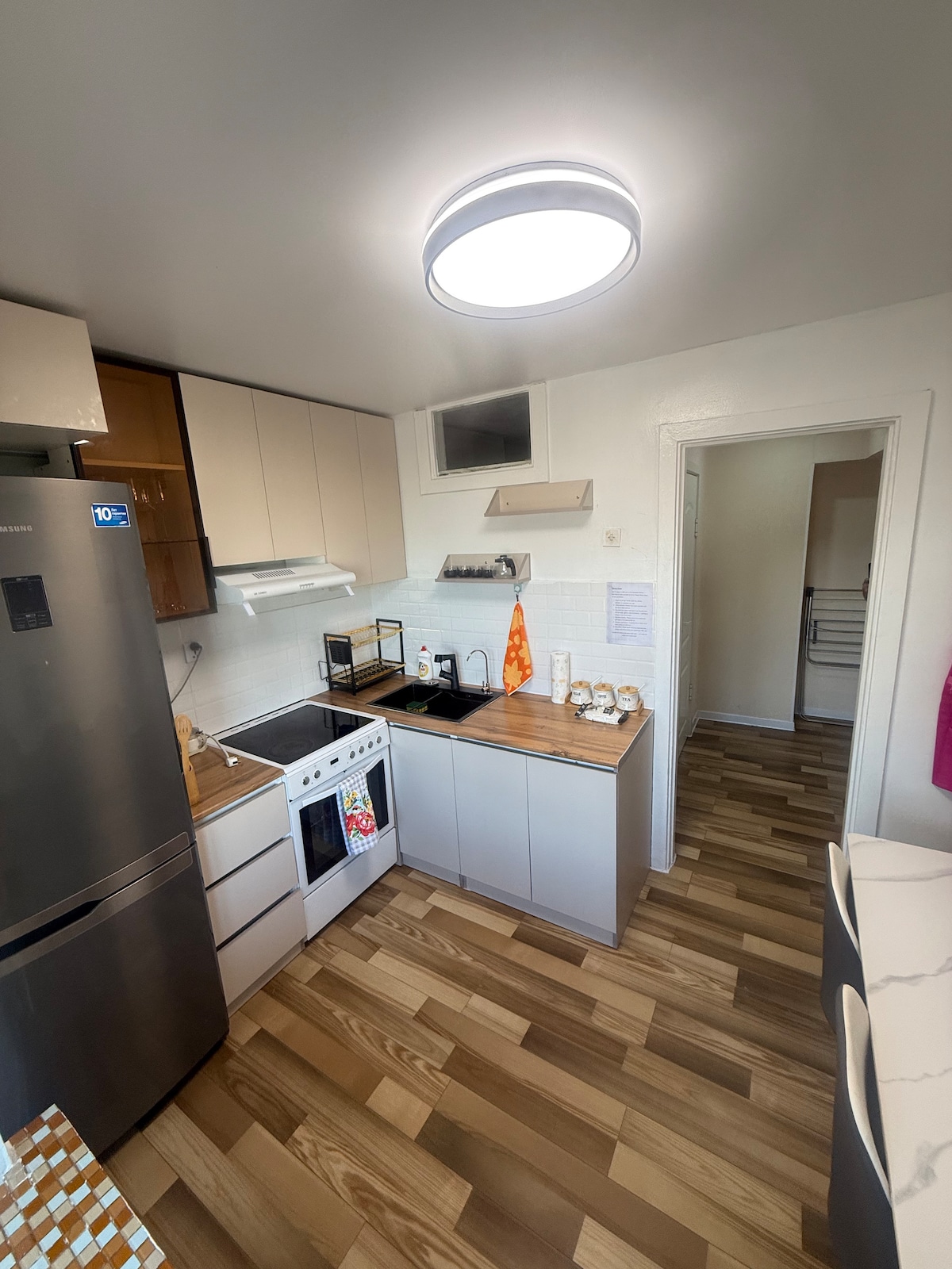 Mon appartement a des tapis dans chaque chambre qui vous font et vous sentent chaud et confortable assez grand espace pour les voyageurs et propre. J'ai un lit pour bébé qui est fou de bois /matériau naturel/. Les voyageurs n'auront pas besoin de s'inquiéter avec leur bébé lorsqu'ils séjourneront ici, même des jouets décorés dans la chambre. Vous pouvez utiliser la cuisine.