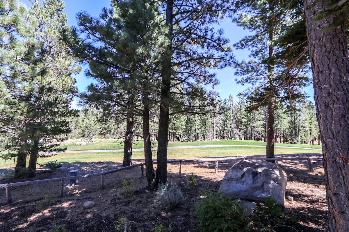 Maison de ville spacieuse avec une vue imprenable à la fois sur les montagnes Sherwin et la montagne Mammoth. Descendez du porche dans la réserve de Snowcreek Meadow, avec des sentiers de randonnée et de ski de fond à quelques pas. Beaucoup d'espace pour un grand groupe, avec 3 chambres en bas et un loft spacieux à l'étage. Grand séjour / coin repas. Cuisine bien équipée. Barbecue. Deux salles de bain. Télévision, Internet. Parking gratuit. Jacuzzi dans le complexe. Fait partie du développement de Snowcreek. Proche de la ville, à quelques minutes d'Eagle Lodge.
